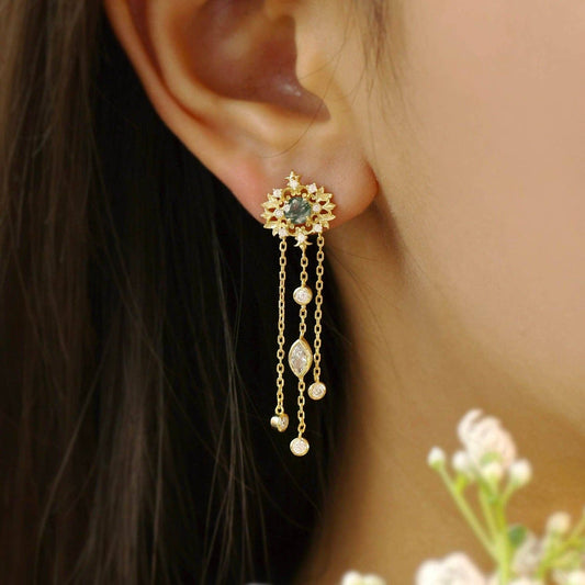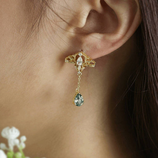 Cirrus Crest Moss Agate Earrings (Yellow Gold) ✦ New Beginnings