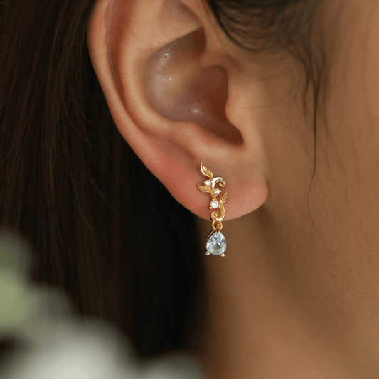 Leafy Cascades Aquamarine Earrings (Yellow Gold)