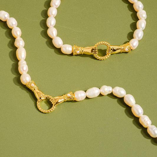 Everleigh 18K Gold Plated with Freshwater Pearl Holding Hands Necklace