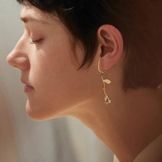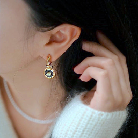 Vintage inspired detailed design Rose pendant earrings with black enamel-gold vermeil