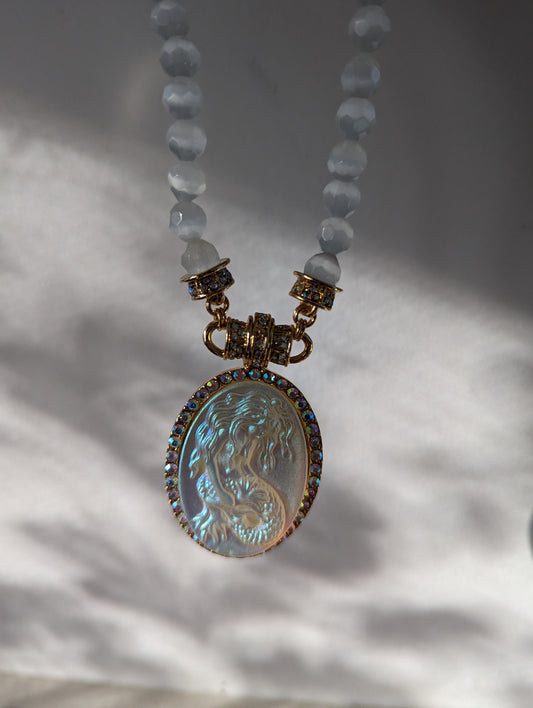 Vintage Mermaid White Cat's Eye Beads Necklace