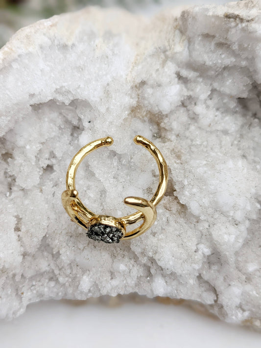 Abundance and Protection ✨Pyrite Crescent Moon Gold Ring ✨ Adjustable