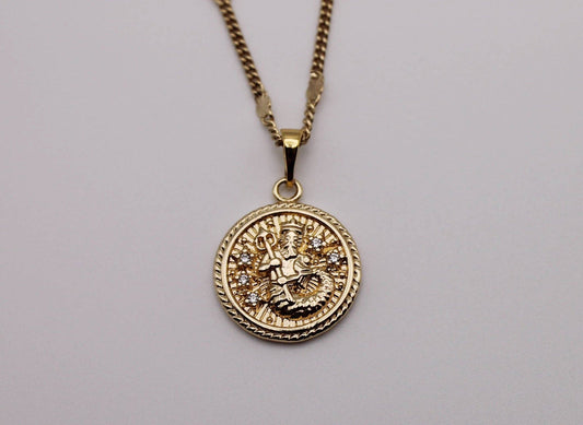 Poseidon Necklace. Gold Filed Coin Necklace. Vintage Chain