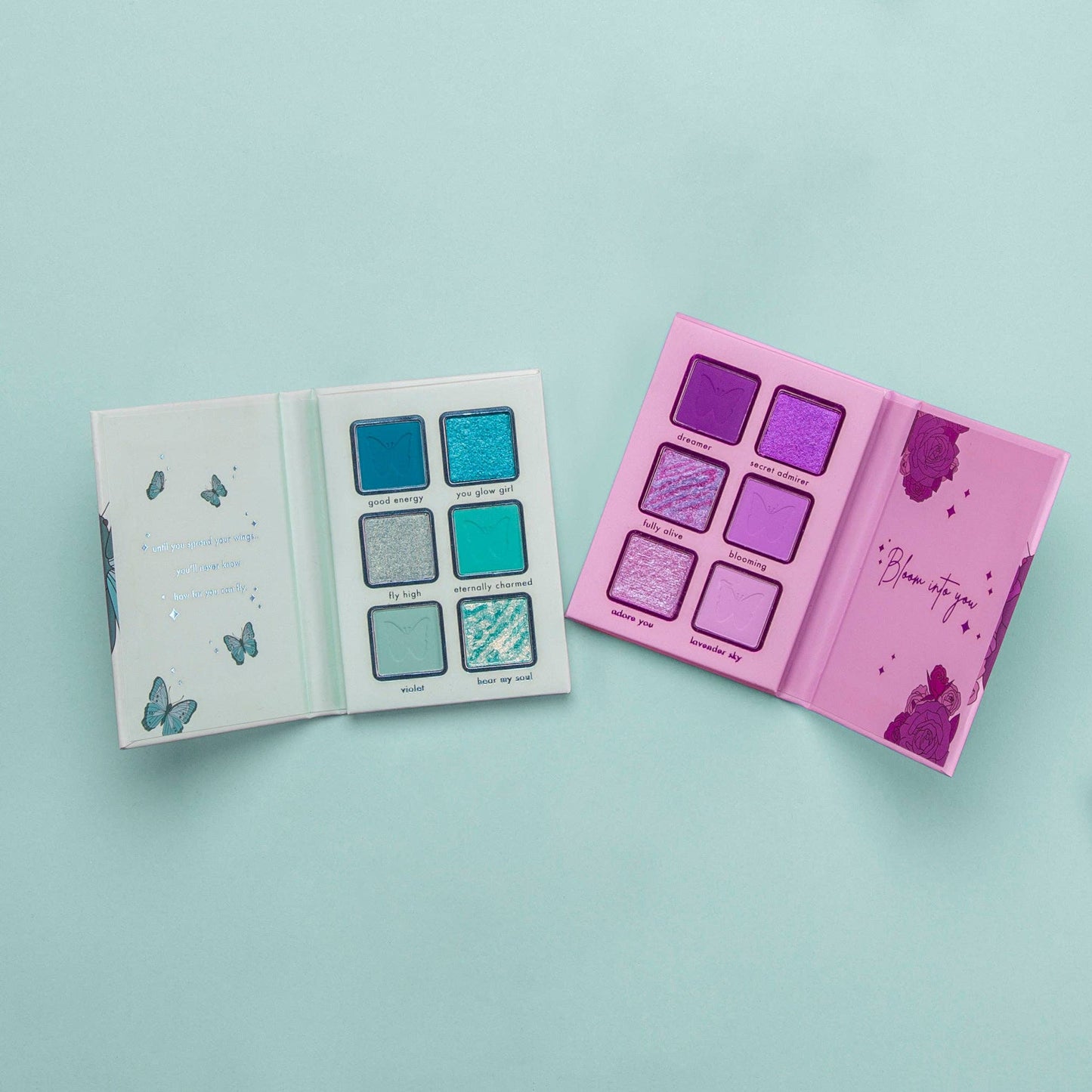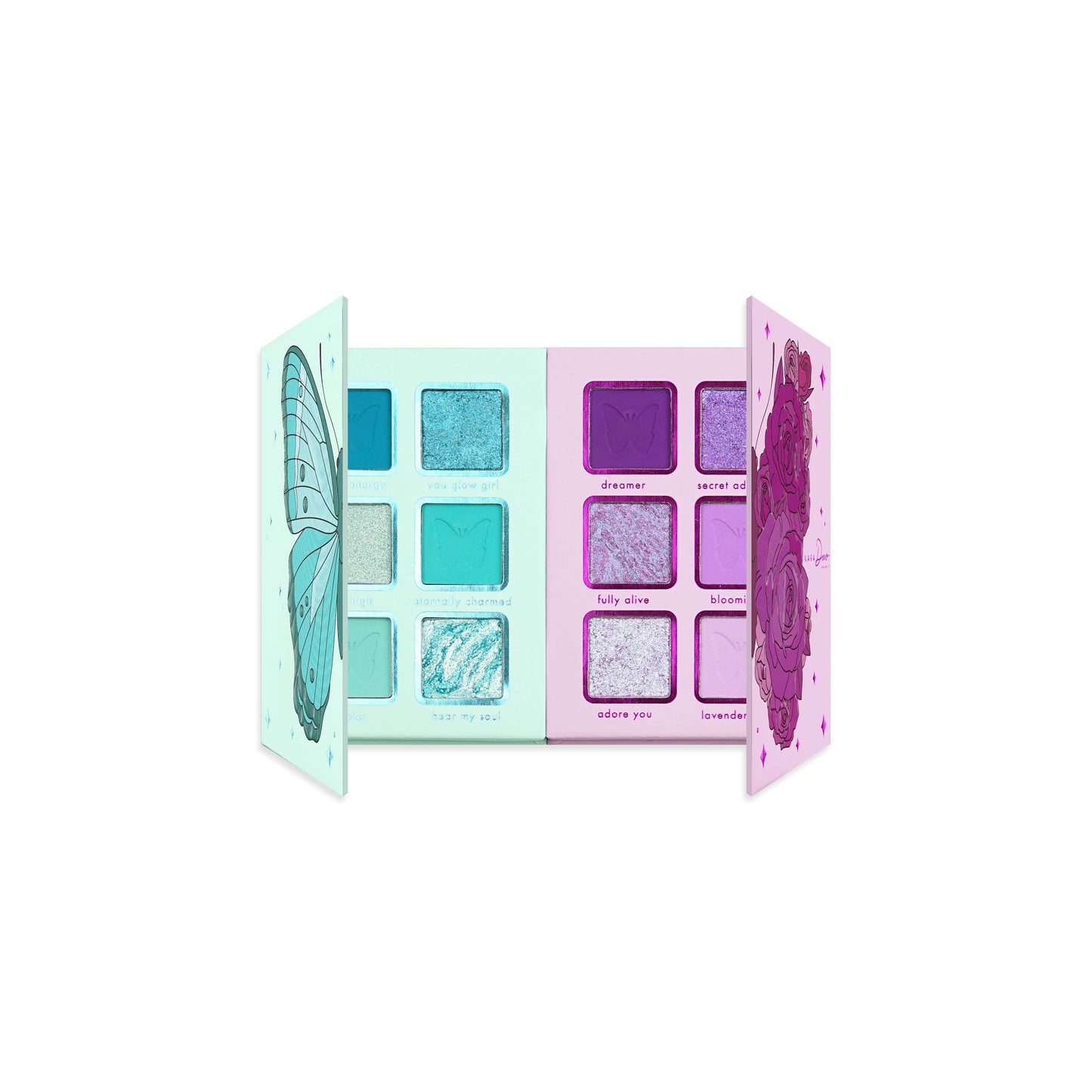 Déployez vos ailes et fleurissez en vous ! Découvrez et adoptez une attitude vibrante avec cette palette composée de deux pièces remplie de bleus électrisants et de violets de rêve. Mélangez sans effort les mats crémeux et ajoutez la touche finale parfaite avec des métaux brillants. Parfait pour mélanger et assortir, laissez briller votre créativité !