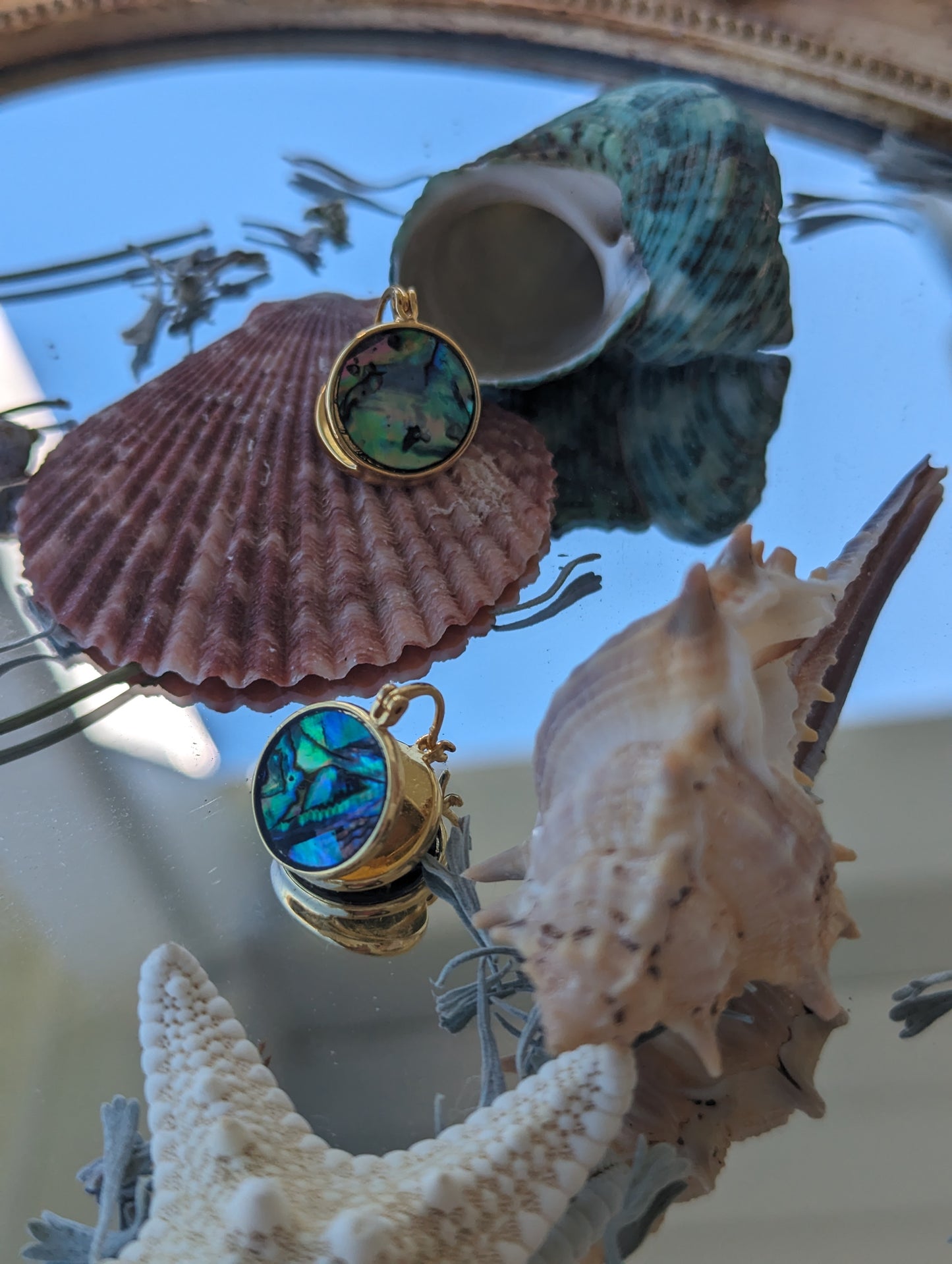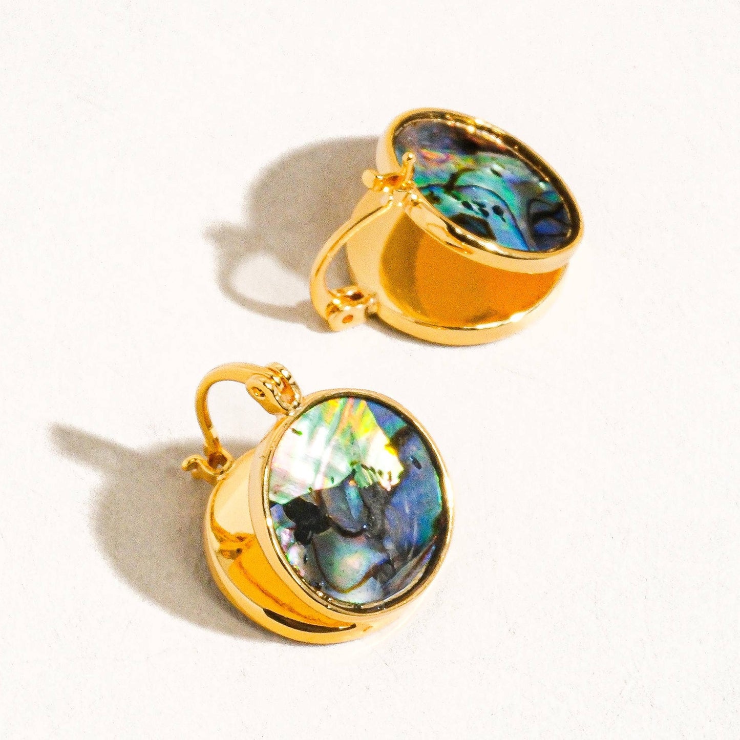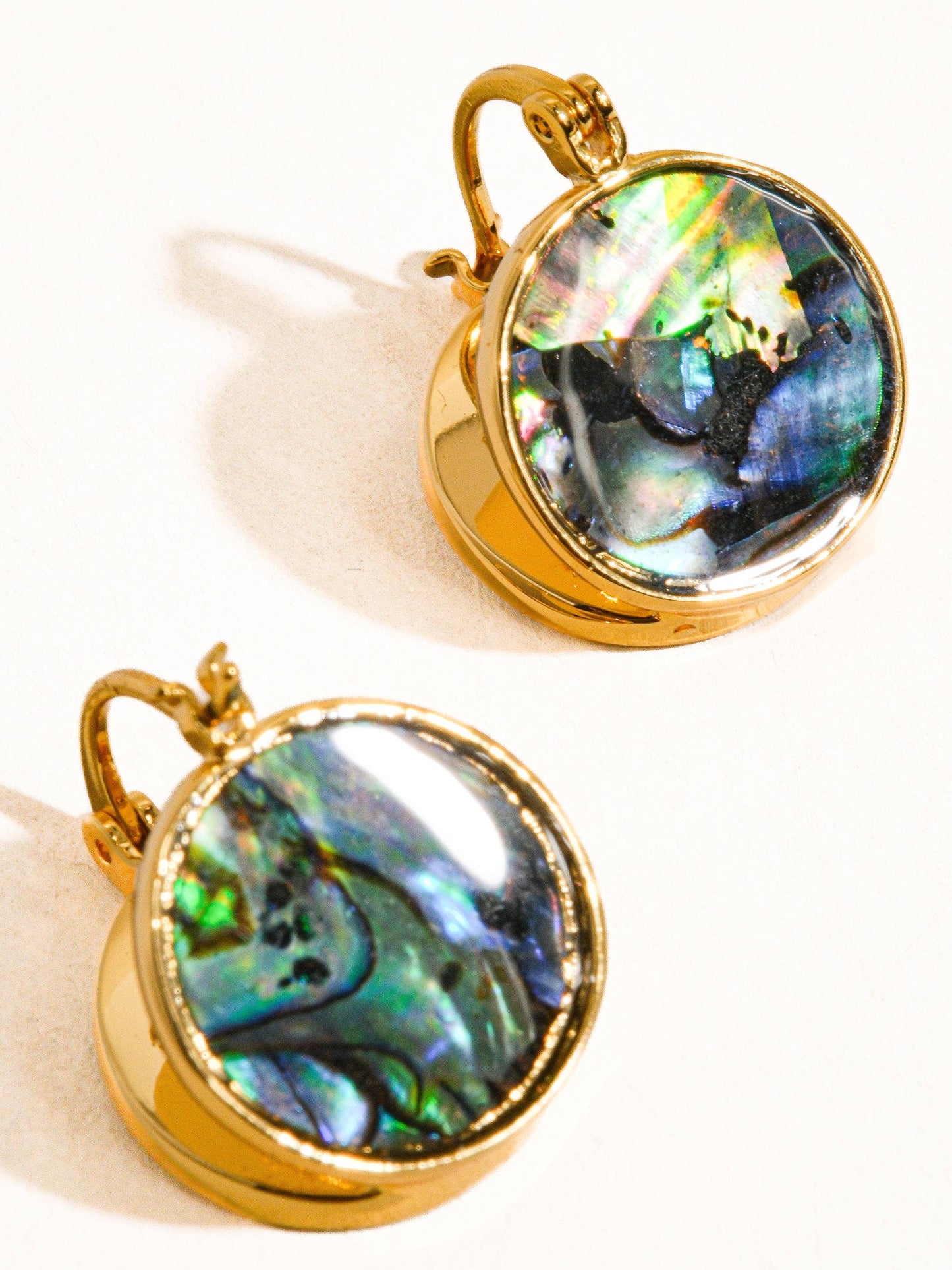 Boucle d'oreille ronde en coquillage naturel en or 18 carats Plaqué or 18 carats Coquille d'ormeau naturel Mesure (L x l pouce) : 0,6 diamètre