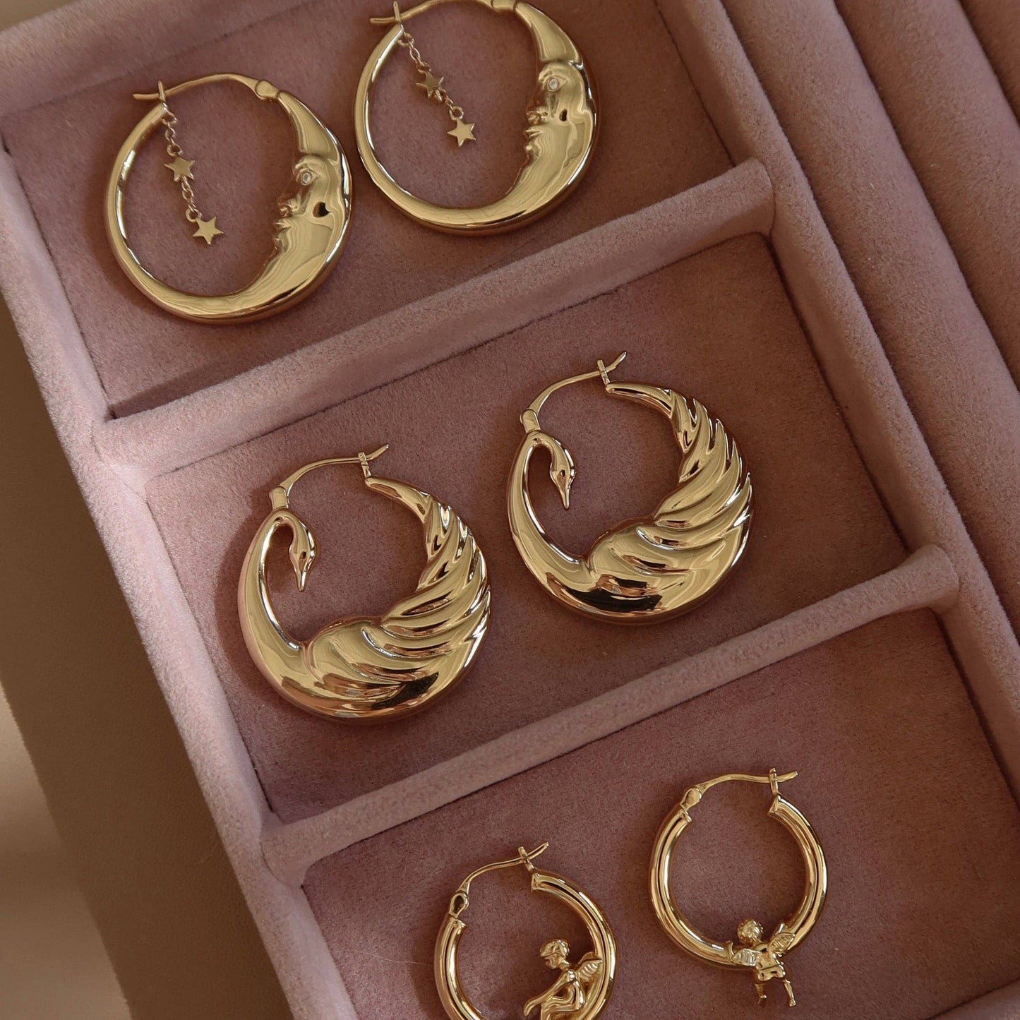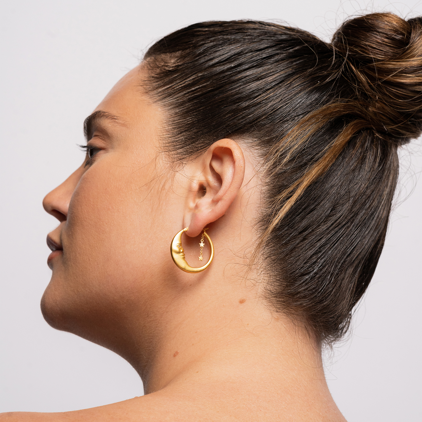Unleash your adventurous spirit with Luna Hoops! These bold hoops are not just for looks - they allow you to speak to the moon itself, unlocking endless possibilities and pushing you to take risks in your life. Don't just settle for ordinary earrings, make a statement and reach for the stars with Luna Hoops!