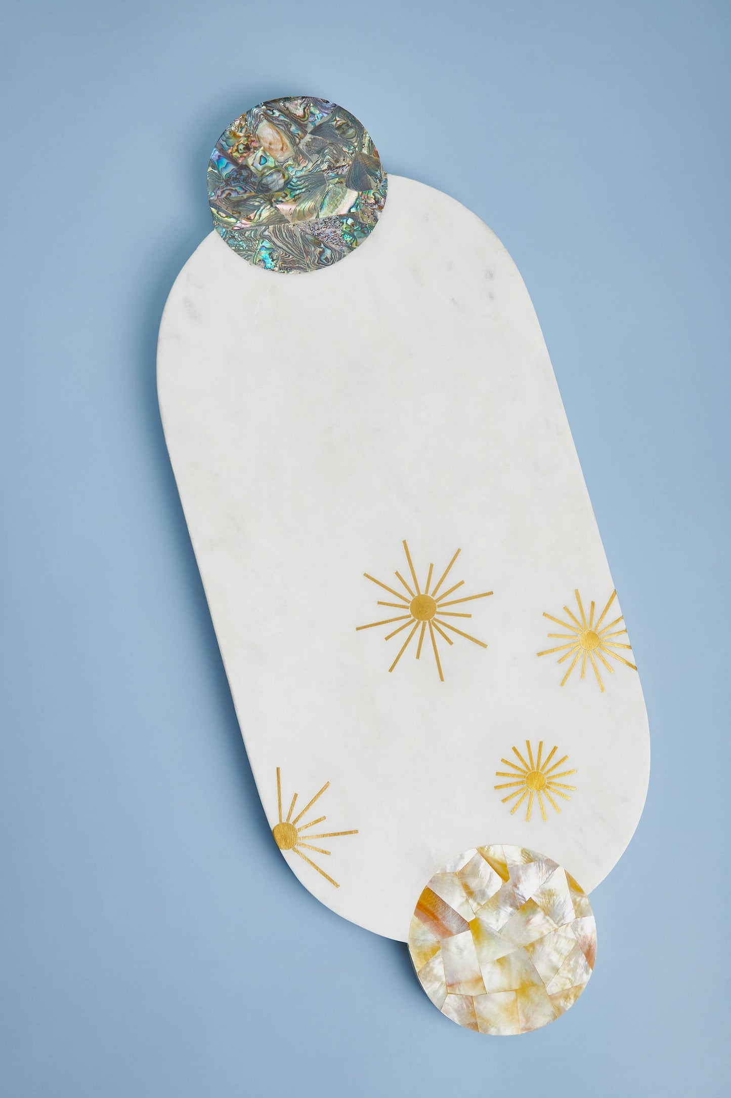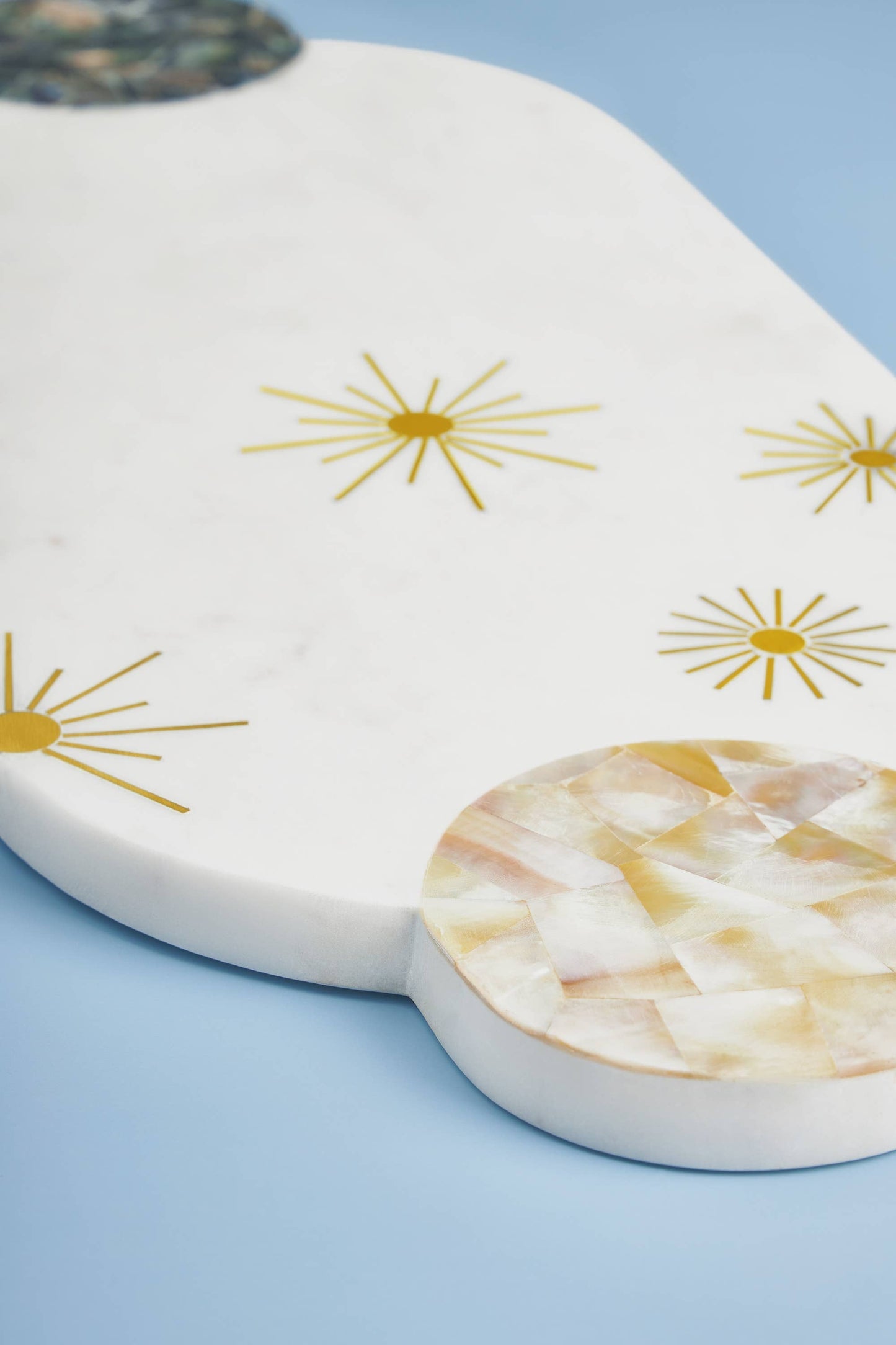 Élevez votre expérience culinaire ! Cette planche à fromage en marbre faite à la main est riche et sophistiquée et convient à une utilisation lors d'occasions formelles et informelles, pour servir une variété de charcuterie. Les variations de couleur, de poids et de veinages du marbre naturel font de chaque planche de fromages/charcuteries une œuvre d'art singulière.