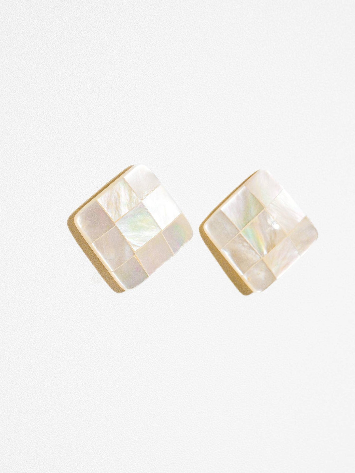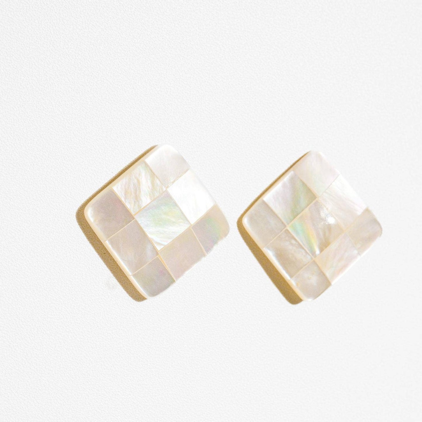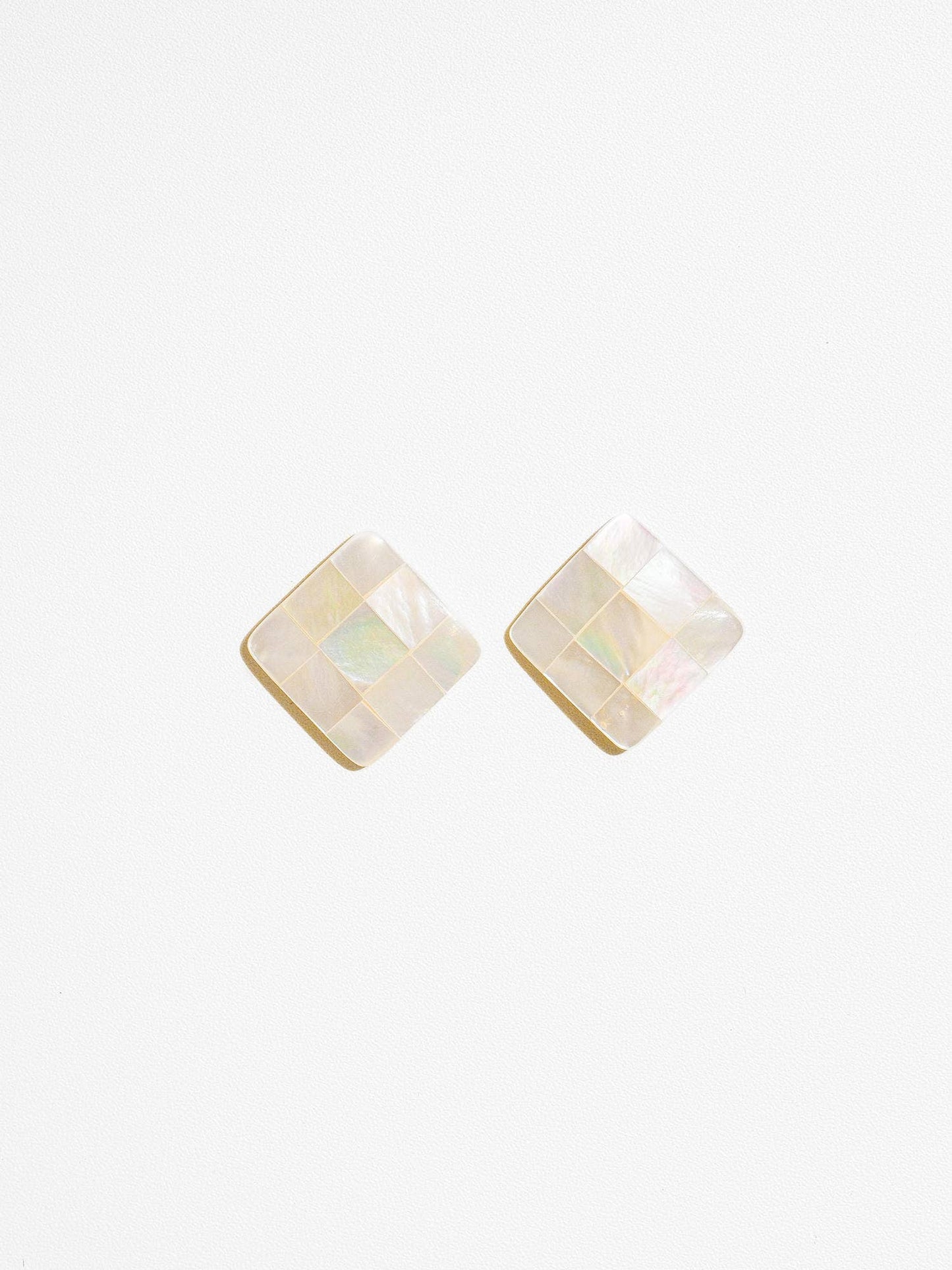 Goujons texturés en perles blanches délicates dans un motif de tissage de panier Mesure des perles (L xl pouces): 0,9 x 0,9