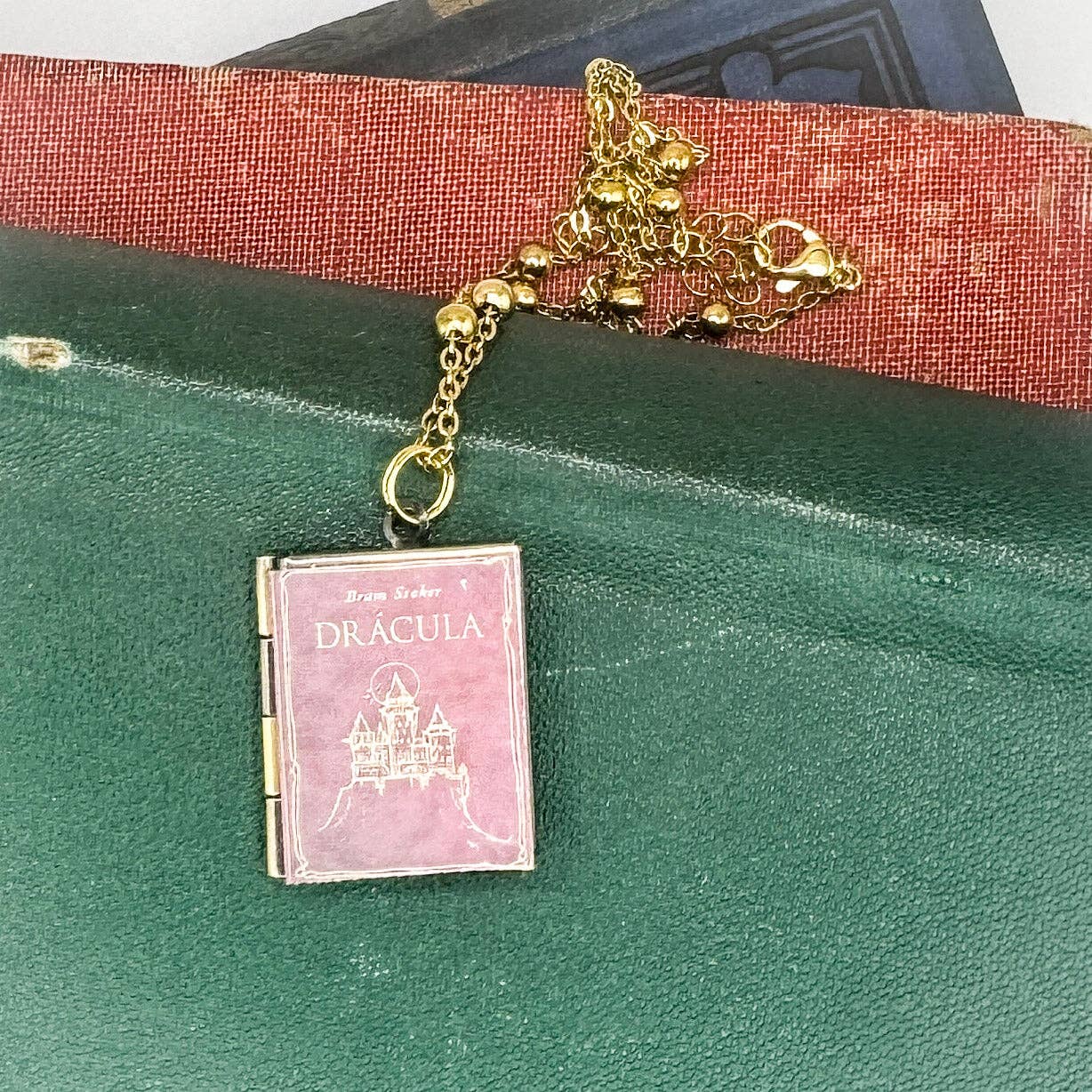 Our Lit Lockets showcase a book cover affixed to a functional book-shaped locket pendant.