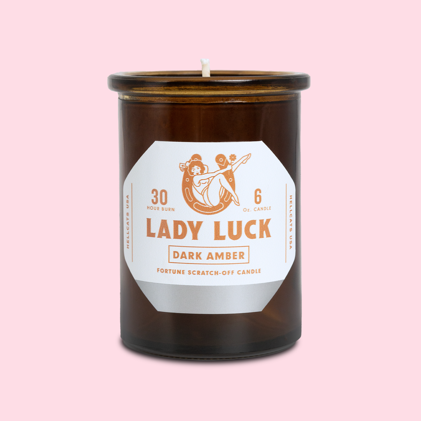 Feeling lucky? Then light up the Fortune Scratch-Off Candle - Lady Luck for a chance to reveal your destiny. This quirky candle offers a playful twist with a scratch-off surface, adding a fun element to your home decor. Who knows, you may just uncover some good fortune (wink wink).