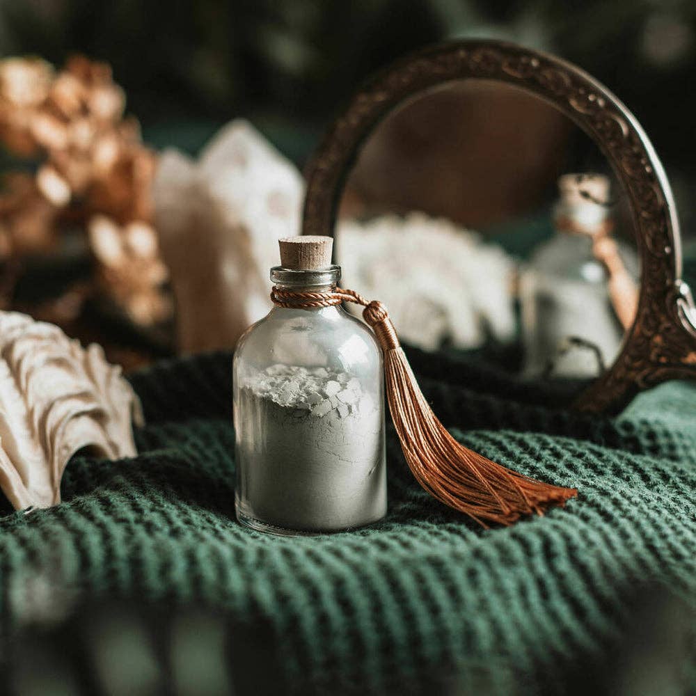 Practice some self-care with our powder green clay mask. Wonderful for its mineral content, it hydrates, softens the skin and removes any excess oil, making your skin look brighter. Perfect for dry or sensitive skin. "The most important relationship is the one you have with yourself" - Diane Von Furstenberg Mix 1tsp with water to make a paste and apply for 10-15 minutes or until the mask has dried. 50ml glass bottle