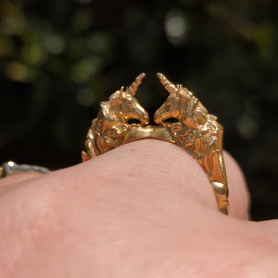 When we were young we believed in the most wonderful and magical stories. The Never Ending Story ring is a reminder of the magic and wonder that exists in our life. The never ending story ring is a beautifully handcrafted piece, finished with exquisite etched details around the unicorns.