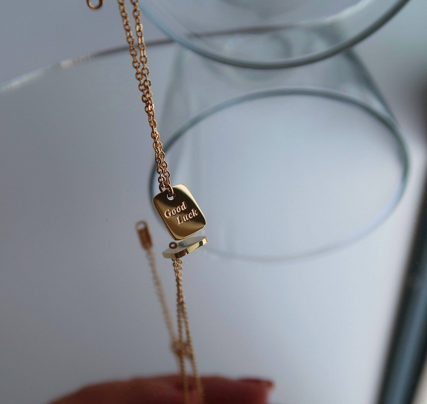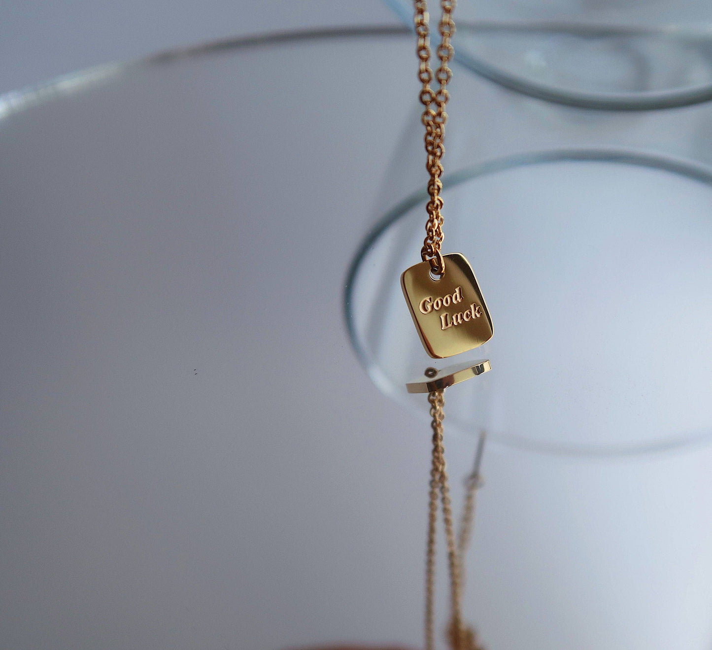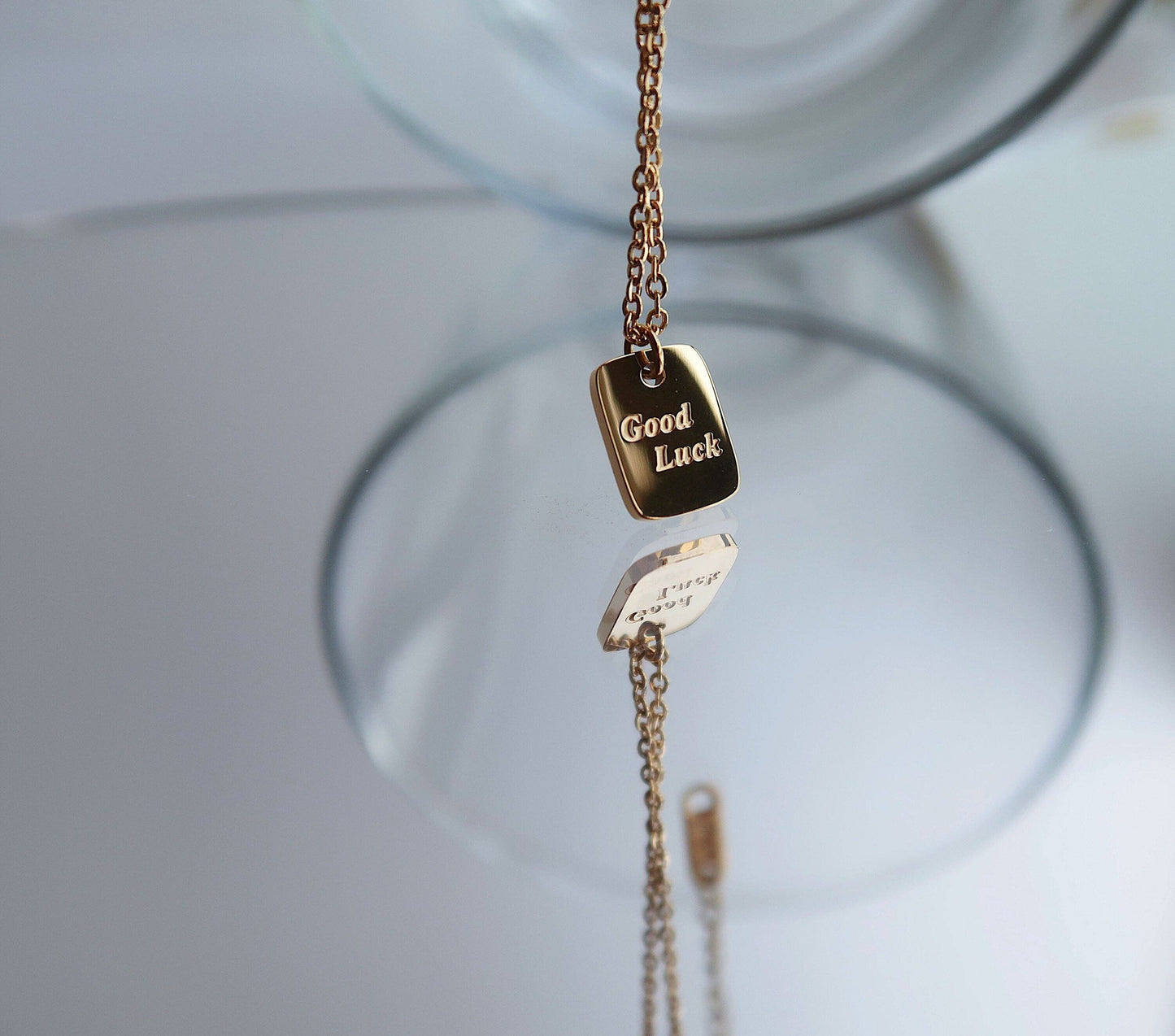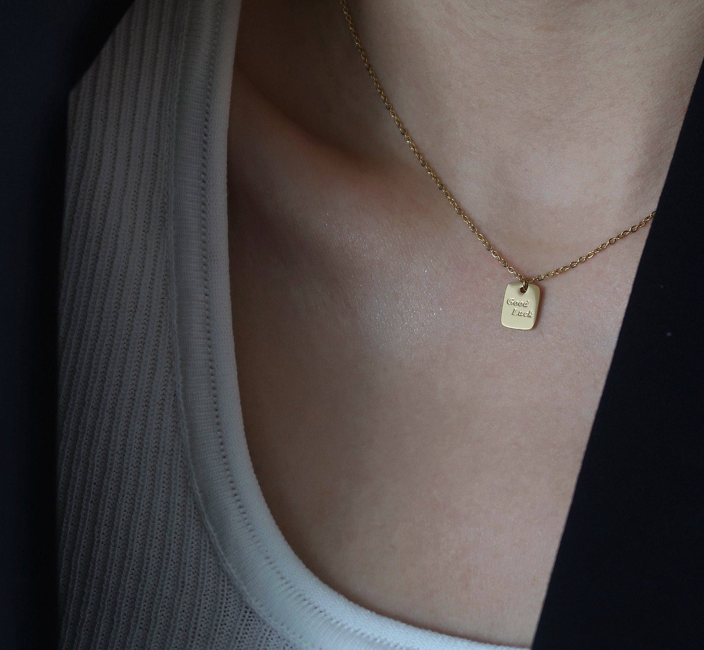 这款 18K 镀金方形小幸运项链不仅美观,还能带来好运。这款大胆的项链可让任何装扮都脱颖而出,为您的整体装扮增添一抹独特的好运!