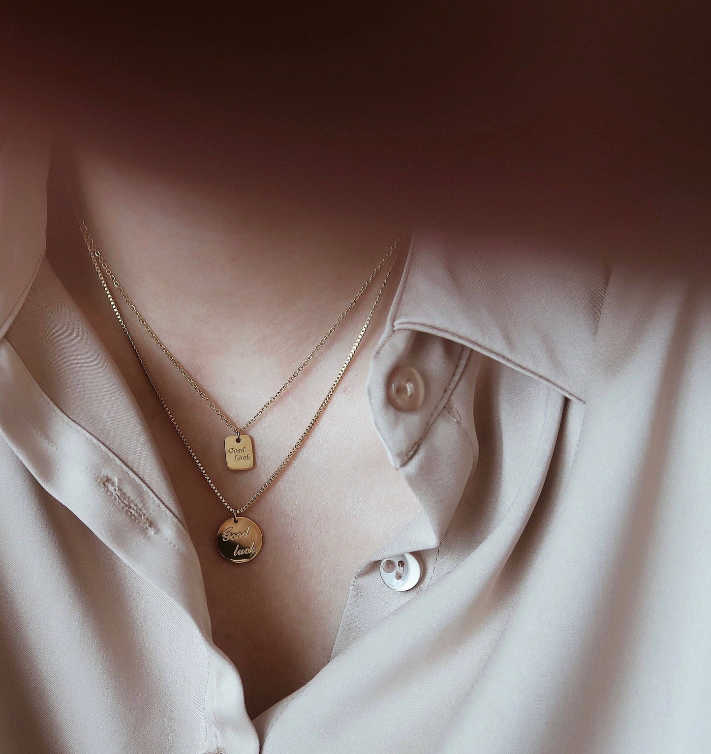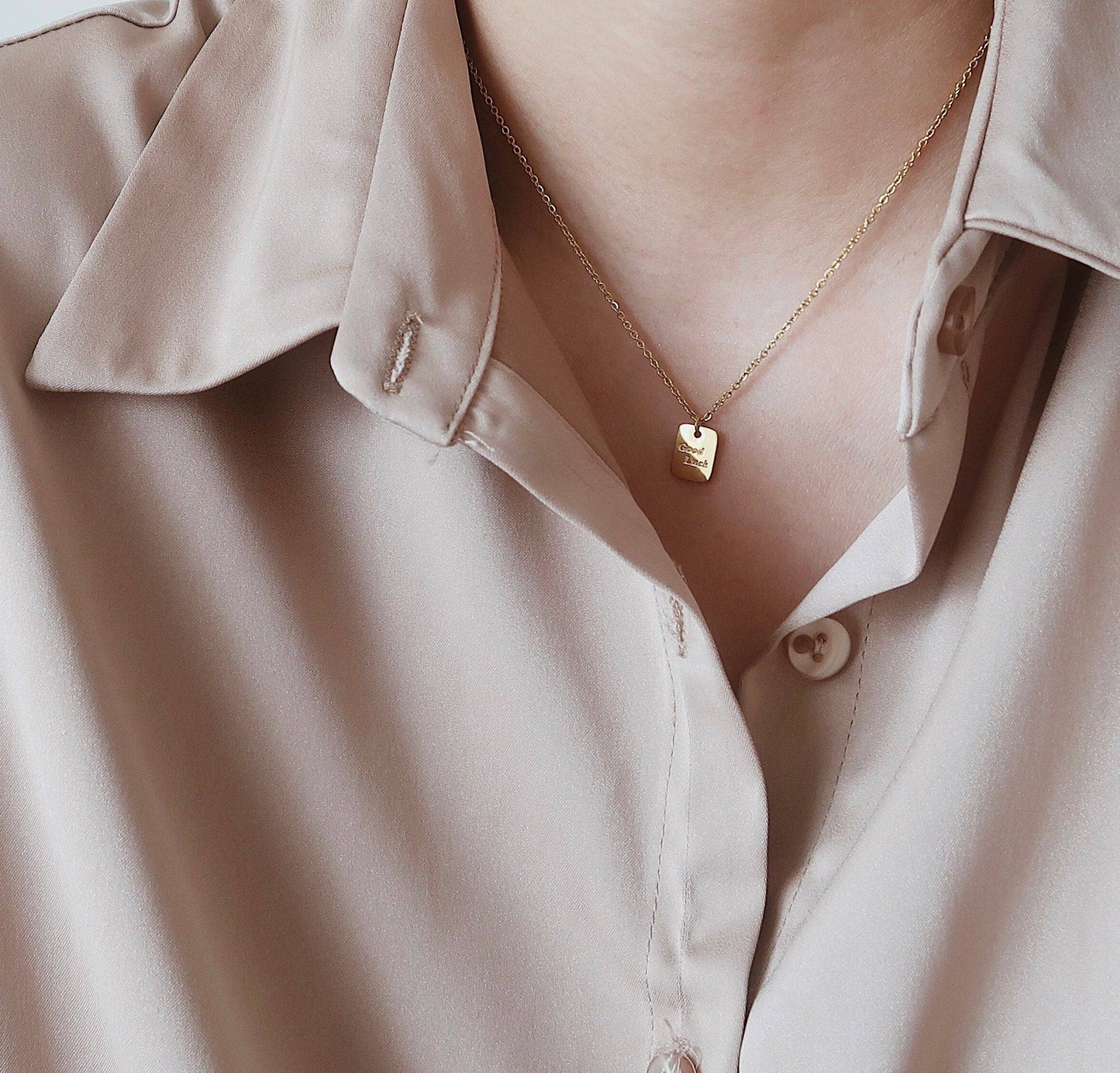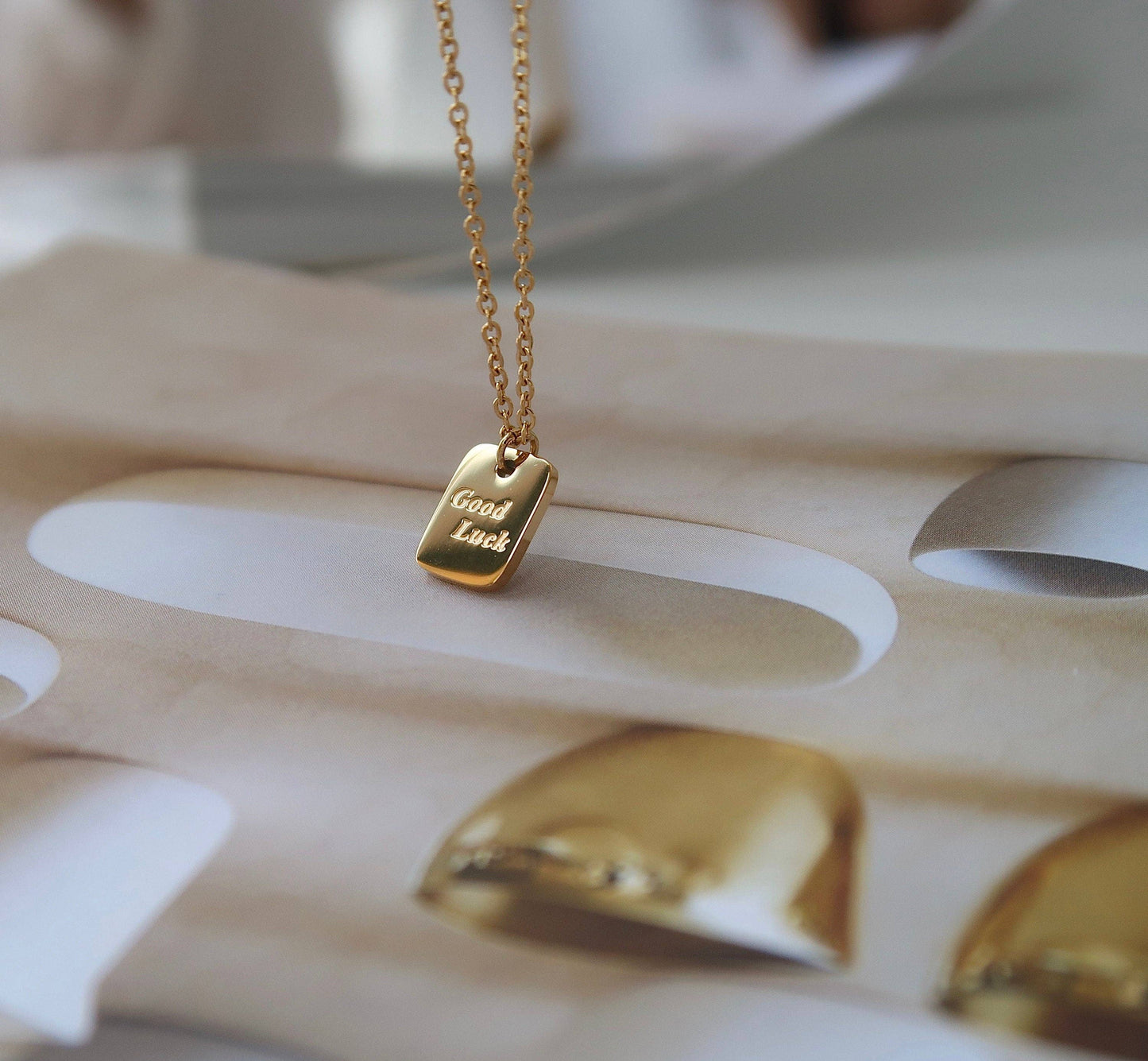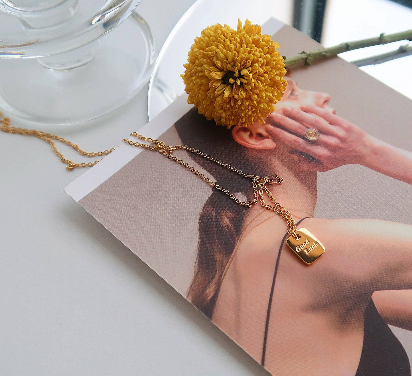 这款 18K 镀金方形小幸运项链不仅美观,还能带来好运。这款大胆的项链可让任何装扮都脱颖而出,为您的整体装扮增添一抹独特的好运!