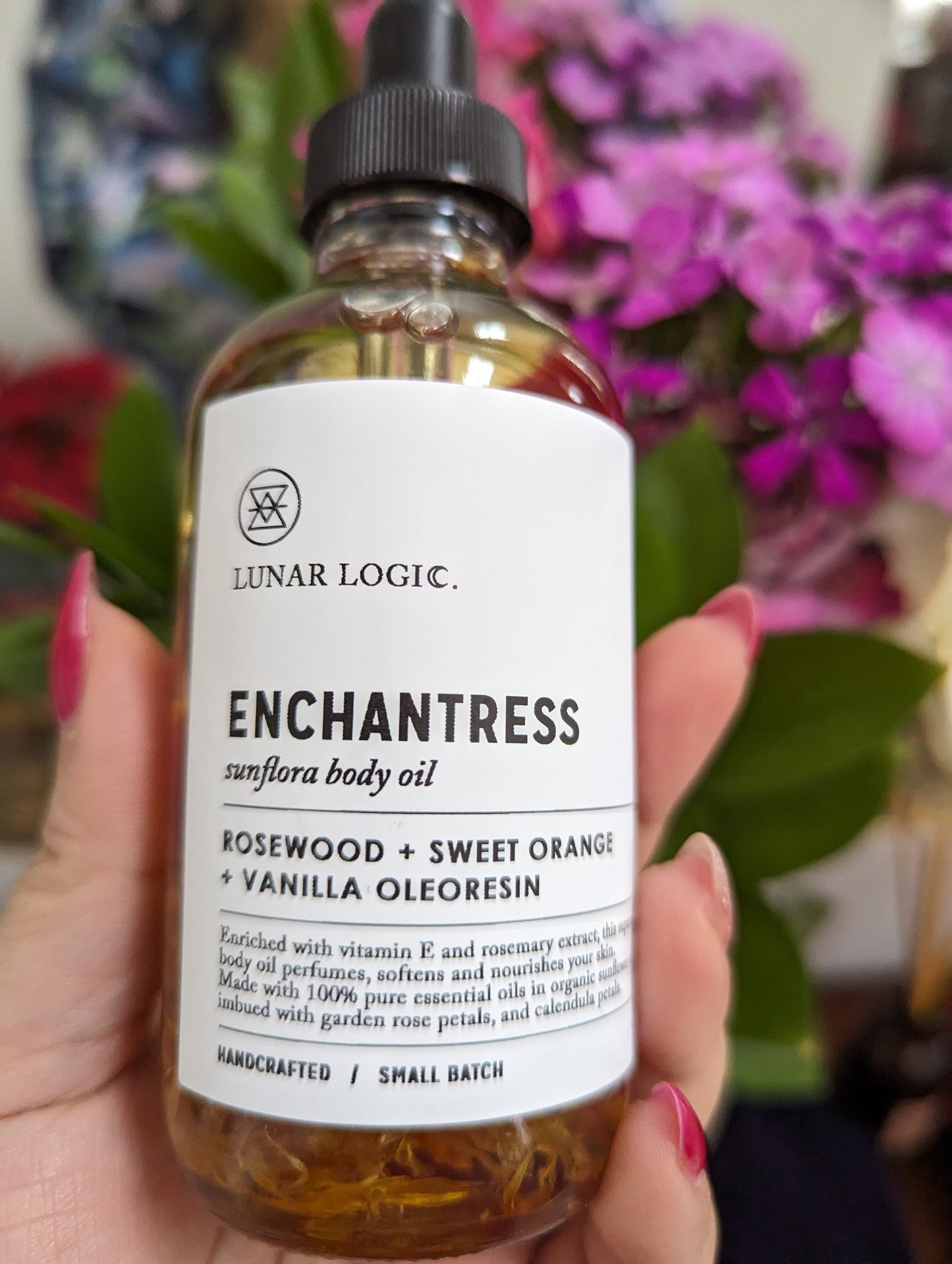 它们共同呵护您的肌肤,唤起自信和光彩。尽情享受 Enchantress 的魔力,这是一款超越平凡、赞美非凡的身体油。以玫瑰花蕾和金盏花瓣为盟友,以诱人的精油精华为指导,成为您一直想成为的女巫。