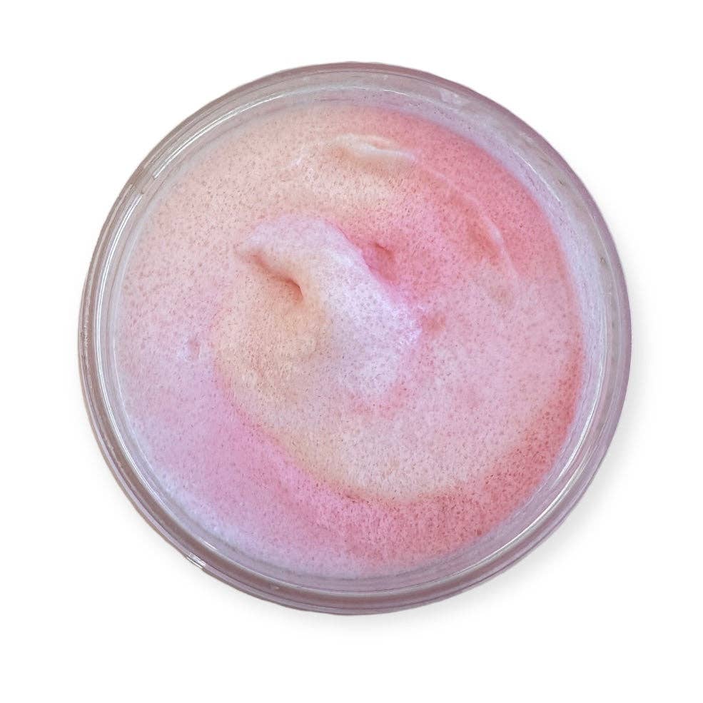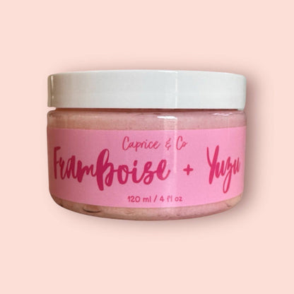 Natural Sugar Scrub 4 fl oz. Scent: Raspberry + Yuzu Our 100% natural Foaming Body Scrubs are a fun, refreshing way to pamper your skin! Made with organic oils, glycerin, and a gentle foaming surfactant, they transform into a rich, creamy lather under water, leaving your skin feeling soft, smooth, and hydrated—never greasy.