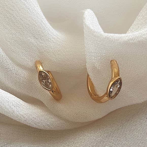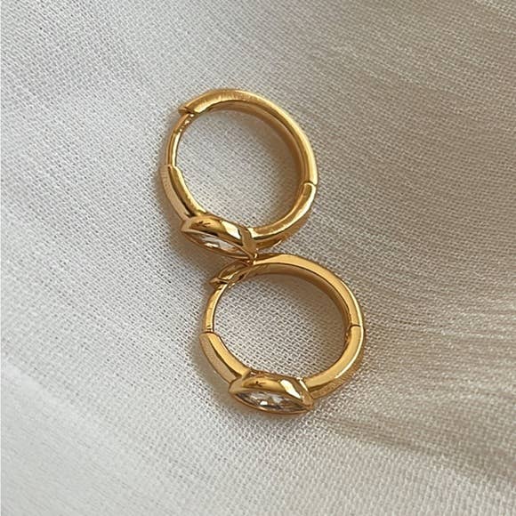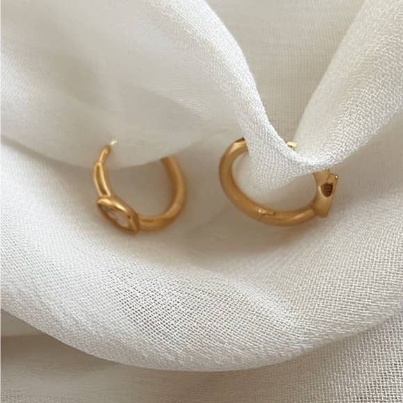 14K GP over brass huggies with small clear CZ eye motif