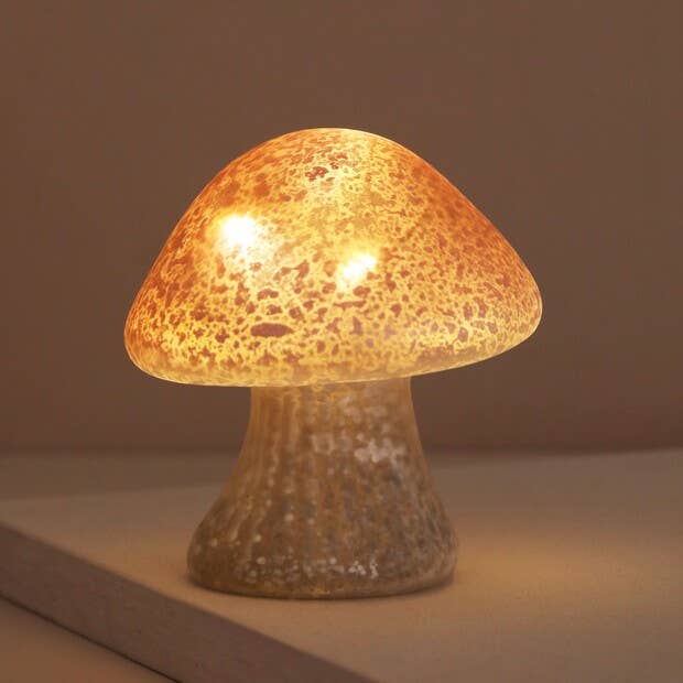 Made of glass, this cute little light is shaped like sweet, fairy-tale fungi and features a textured top and ribbed stalk as realistic details.